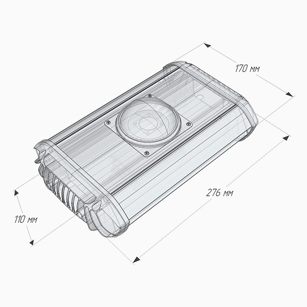 - универсальные крепежи светильника: рым-болт или регулируемый поворотный кронштейн;